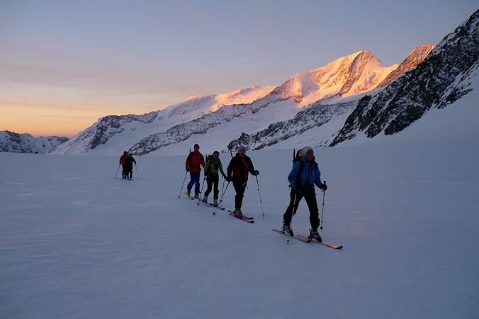 Sonnenaufgang auf dem Weg zum Fiescherhorn