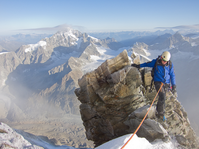 Der Wind hinterlässt auf dem Felsen eine dünne Reifschich.