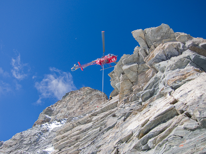 Das Lama der Air Zermatt hat noch rund 3m Rotorfreiheit, und das im Leerotor!!!