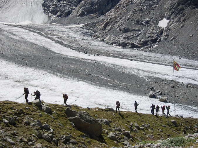 Das ist nicht der Jungfraumarathon, sondern die Ankunft unserer Eisenbahner in der Schreckhornhütte