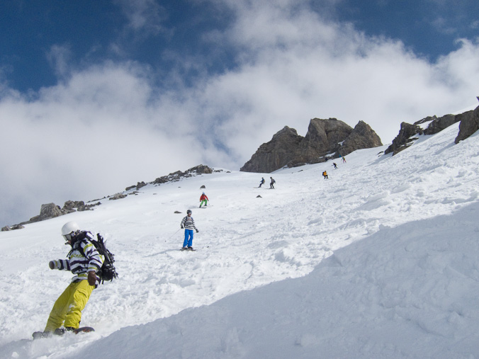 Mit mehr oder weniger Fahrkönnen kämpfen wir uns die erste Rinne runter