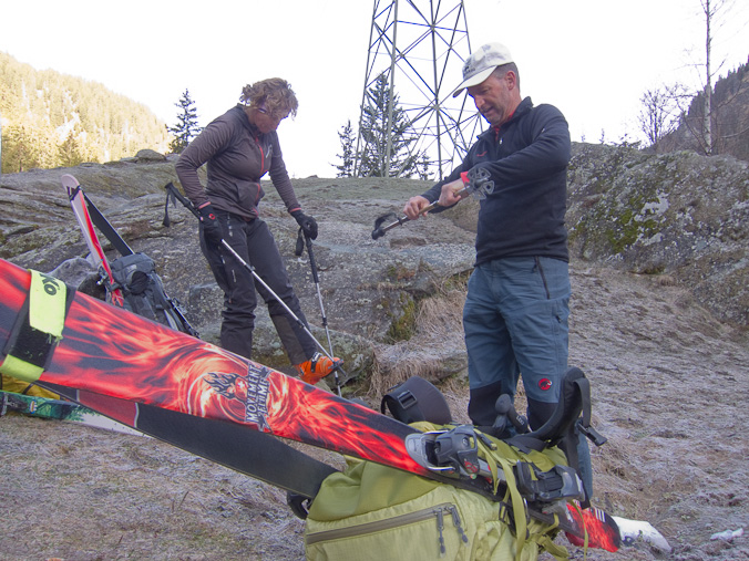 Die Stöcke werden auf die richtige Länge eingestellt. Es kann los gehen