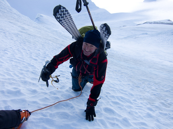 Die Skis auf dem Rucksack und der Pickel in der Hand...