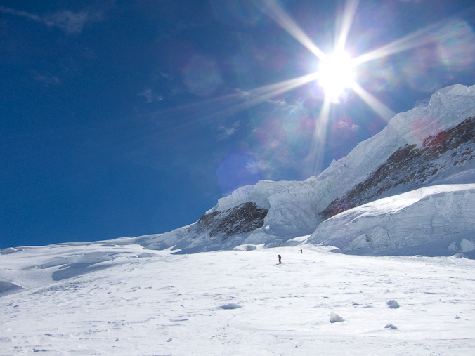 Eistrümmer und hängende Gletscher machen uns so Angst, dass wir vollgas duch die Zone flitzen.