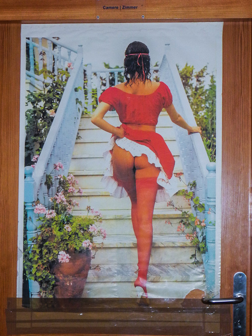 in der Marco e Rosa-Hütte. Der Gipfel heisst: Arsch a Güks. Doch mit einer Hauswurst kommt man da nicht weit ;-)