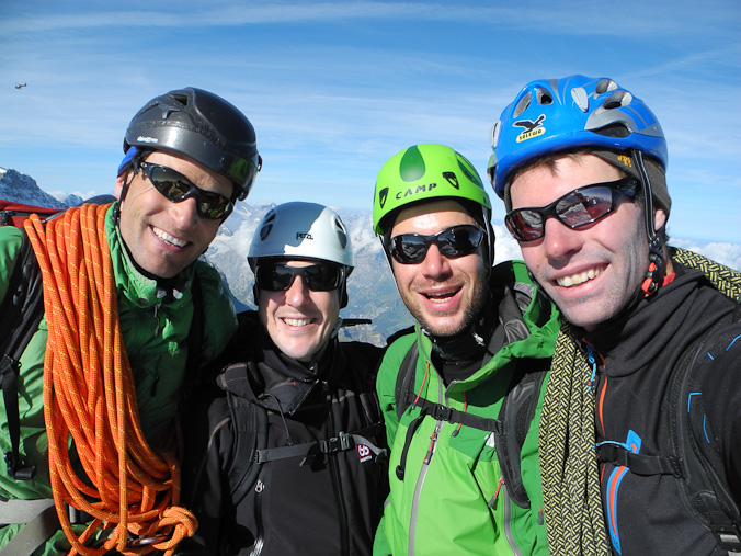 Das Eigerquartett erreicht den Gipfel und feiert diesen in vollen Zügen