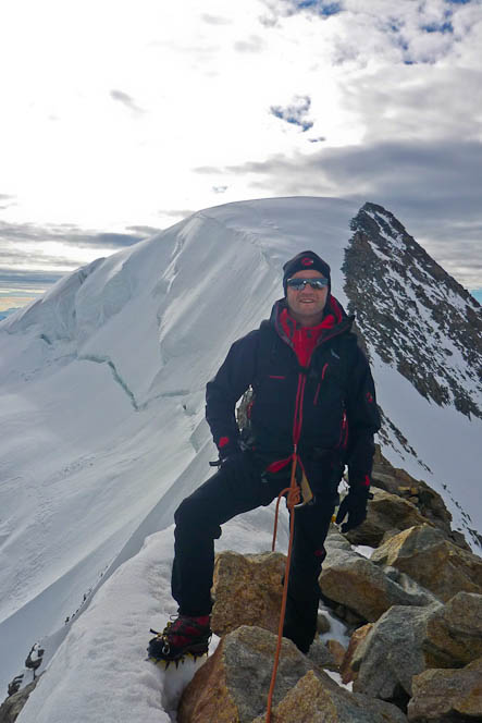 2.Tag Bellavista/Palü- Überschreitung: Nach einem super Felsgrat auf dem Gipfel des Piz Spinas (Palü West)