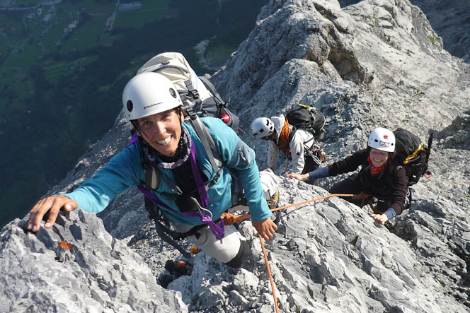 2.Tag, Eigerhörnli. Die luftige Kletterei lässt uns "strahlen". Die Stimmung ist gut.