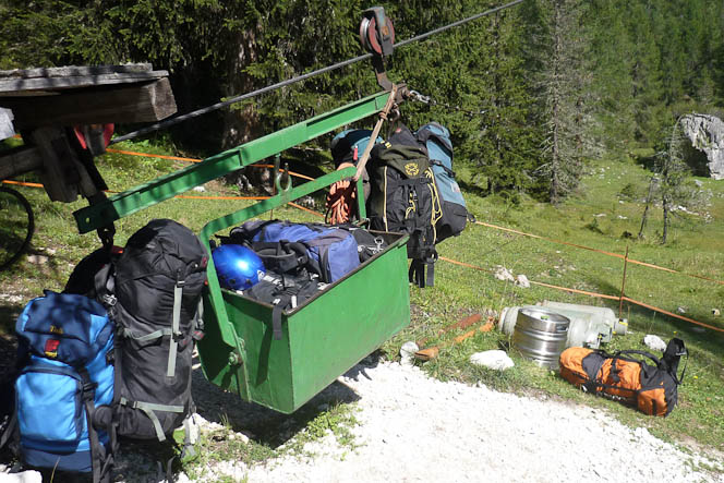 Der Zustieg zur Fonta Saviohütte kann dank der Transportbahn ohne schwehres Gepäck unter die Füsse genommen werden.