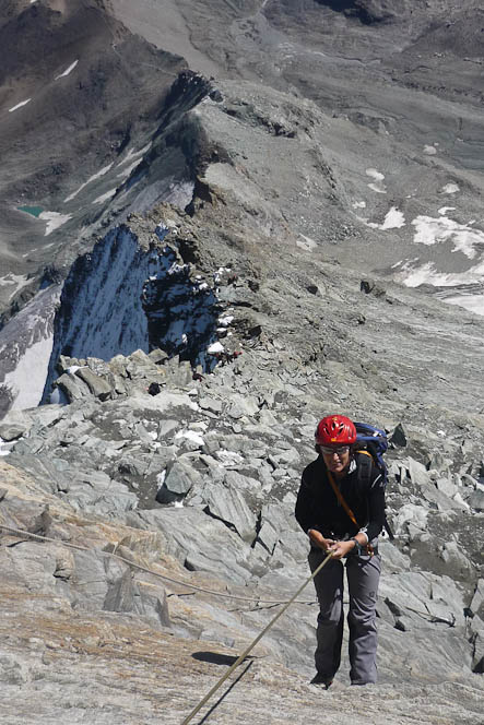 Dank guter Klettertechnik und Elbogentaktik steigen wir deutlich schneller ab!