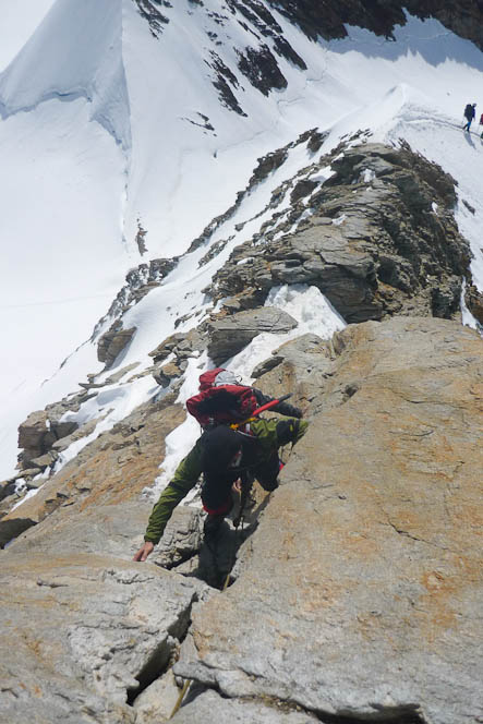 Die anschliessende Felspassage muss halt mit den Steigeisen geklettert werden.