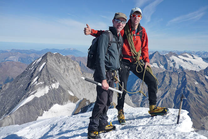 Um so grösser ist immer die Freude am Gipfel. Der Mönch ist nicht nur ein schöner Aussichtsberg, er gibt auch Einsicht in die Touren der Nachbargipfeln.