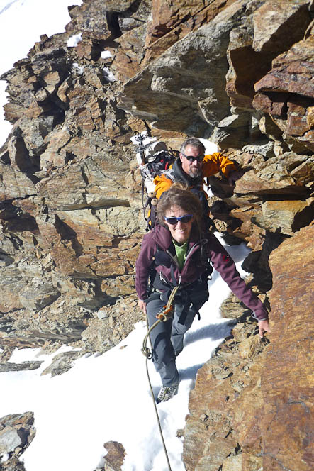 Doch dort, o Schreck, der erste Stau! Sogar in der ersten Rinne wird zwischengesichert!