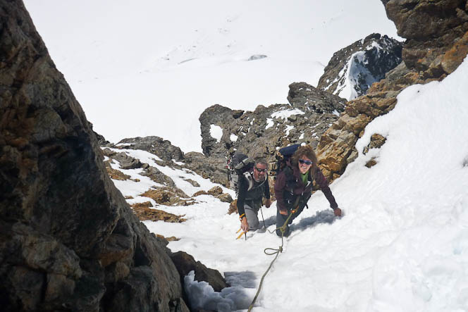 Das letzte Couloir führt uns zum Gipfelgrat zurück.