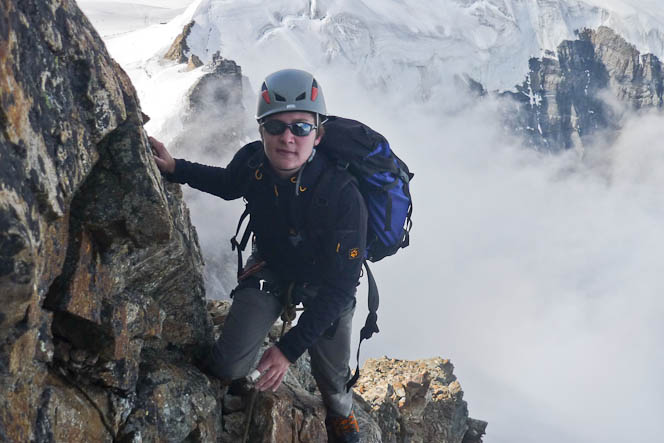 Der Grat wird meist direkt überklettert, ab und zu jedoch auch in der Nordseite umgangen.