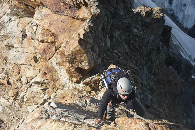 Die Schlüsselstelle besteht aus einer schönen 8m hohen griffarmen Platte.